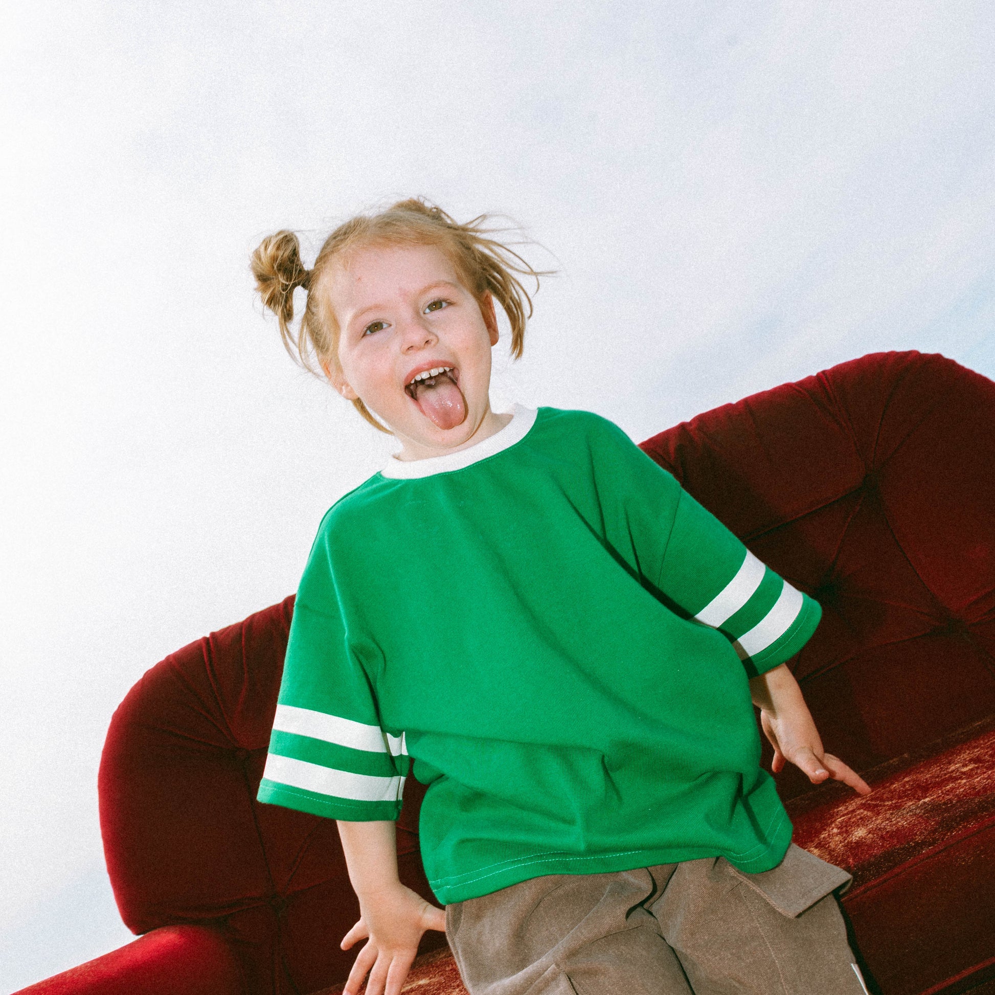 Team spirit, but make it Bud. The Game Day Tee serves major vintage-sport energy with bold white sleeve stripes and a crisp ribbed neckline that pops against that punchy green. Made from mid-weight cotton for all-day comfort and durability, this one’s ready for whatever the day throws at it, from the playground to post-game snacks.